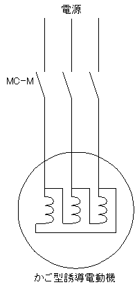 図1はかご型誘導電動機を全電圧始動する回路図です。始動するときはMC-Mを閉じて電動機に全電圧を印加します。回路がシンプルで始動用の機器が不要です。