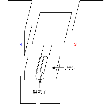 整流子はパイプを半割にしたような金属片で、この整流子にブラシを押し当てています。整流子は電線の輪と共に、ブラシと摩擦しながら回転します。