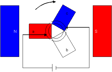 そして電線の輪が図1の状態から90[°]回転したところで電流の向きを変え回転を継続させます。
